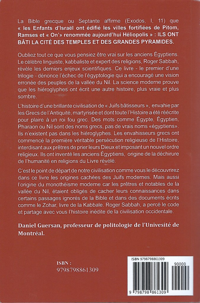 Après avoir publié Le Secret des Juifs et Les Secrets de la Bible, Roger Sabbah découvre les noms des dieux égyptiens transcrits dans la Kabbale.